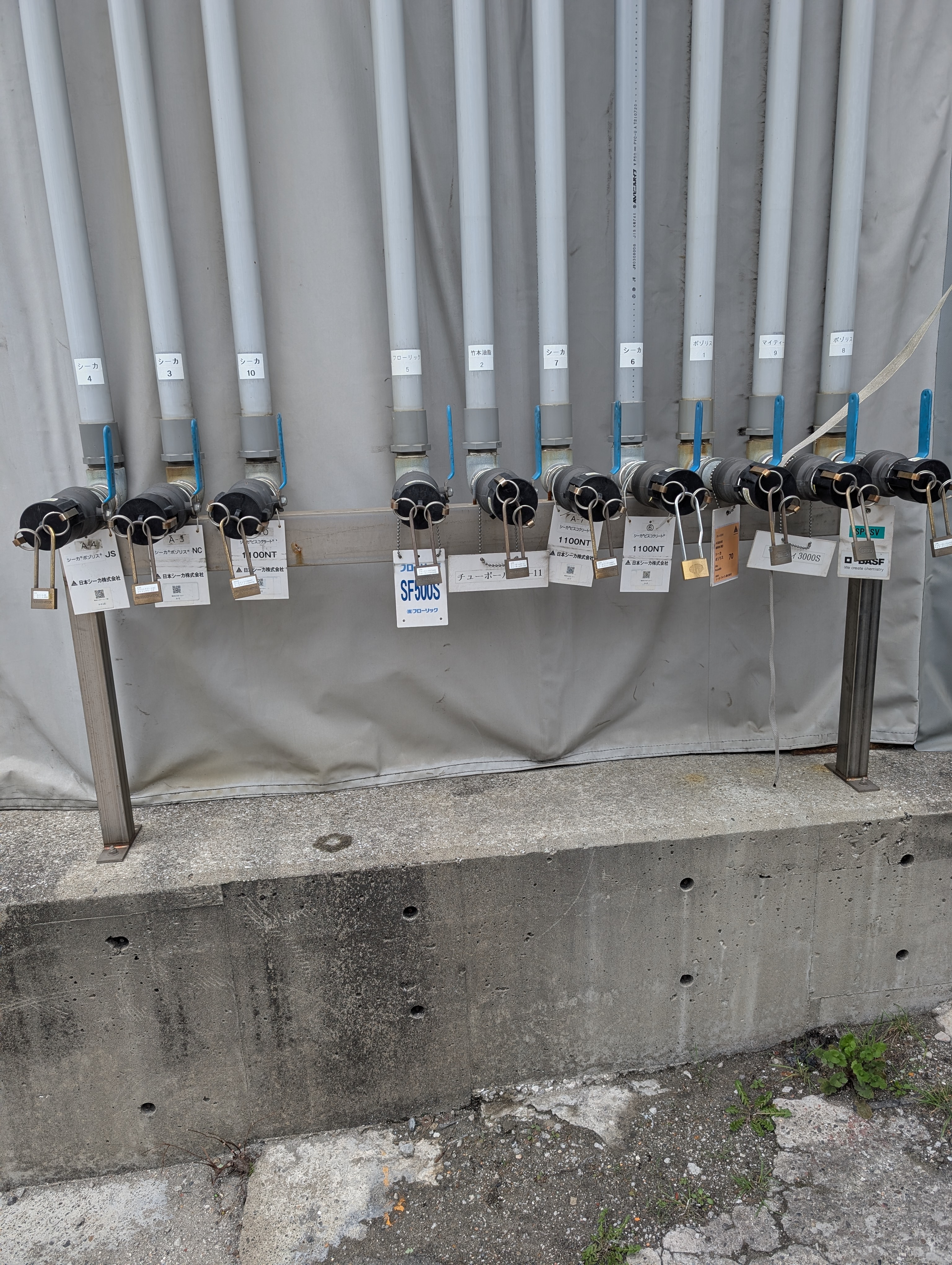 タンクは配管の右側から架台の階段を登り3階タンクの2番目のタンク。(配管追える)