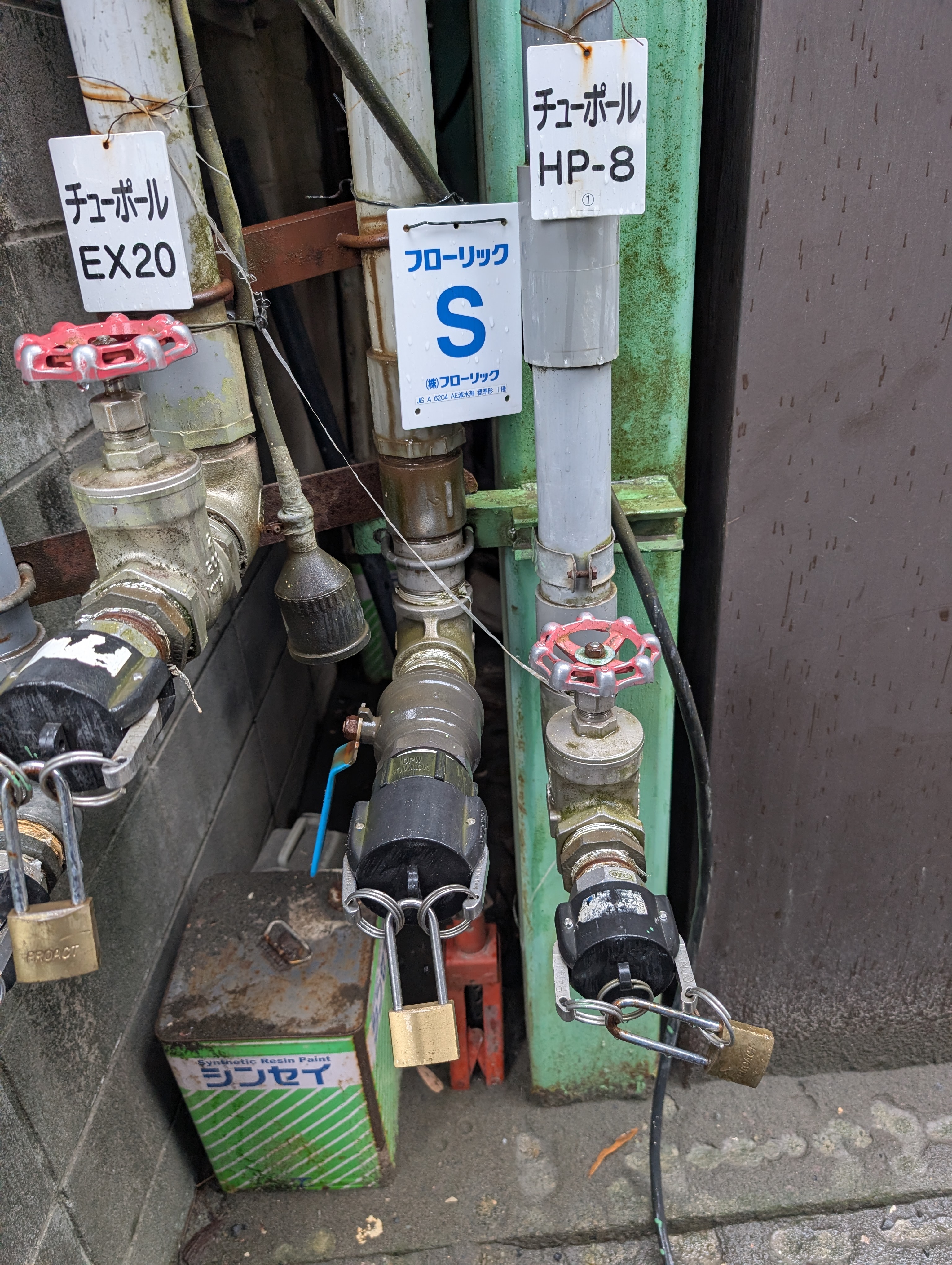 台貫を斜めに跨いで停める(下にラインが引いてある)